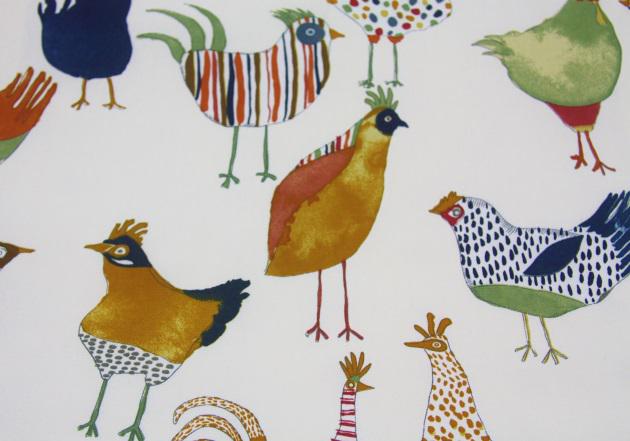 Chick-Chick – Graphic style chickens on light cream background/ Cotton