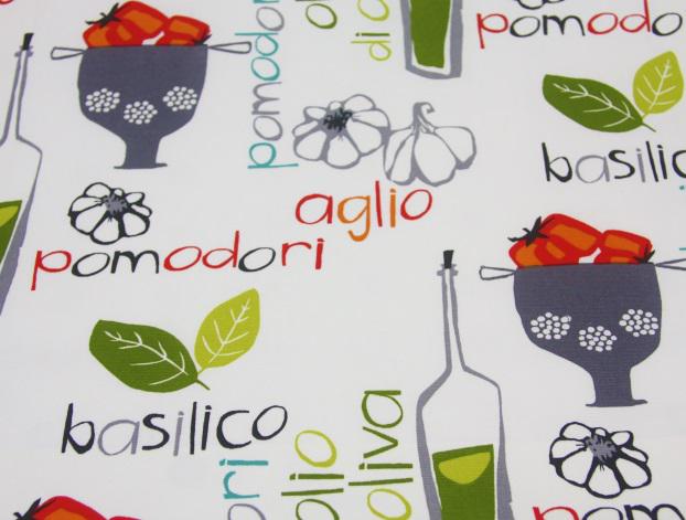 Pomodori” – Kitchen essentials with writing; multi clrs/ Cotton