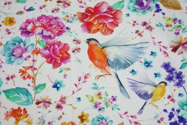 “Birdland” – Colourful flowers with Birds/ Brushed cotton