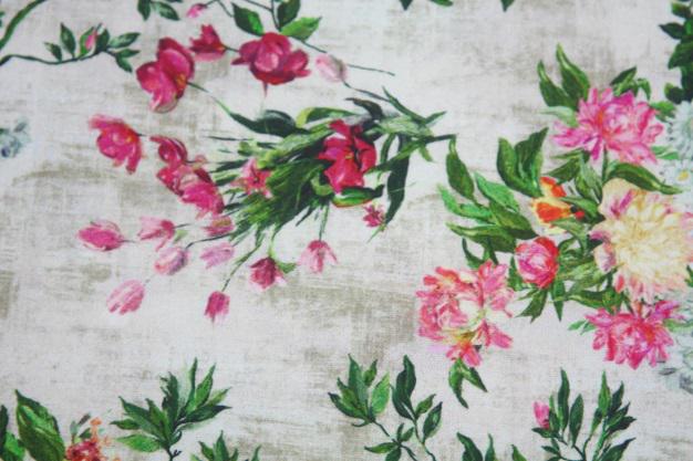 “Floral Arrangement” – Washed linen looking background with flowers/ Brushed cotton