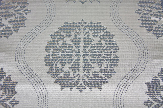 Grey Swirl with leaf – Shiny creamish background (woven in)/ polyester