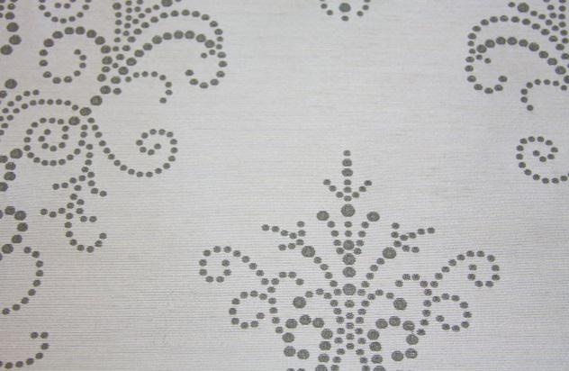 Dotty Brokade – Shiny creamish background with grey dots (woven in)/ polyester.